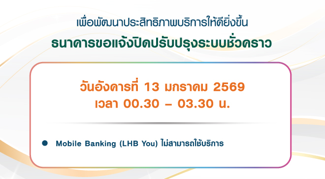 LH Bank ขอแจ้งวันหยุดเพิ่มเติมในวันตรุษจีน สำหรับสาขาหาดใหญ่