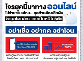 เตือนภัย! มิจฉาชีพออนไลน์ อย่าหลงเชื่อสารพัดกลโกงฯ ผ่านช่องทางสื่อสารของธนาคาร