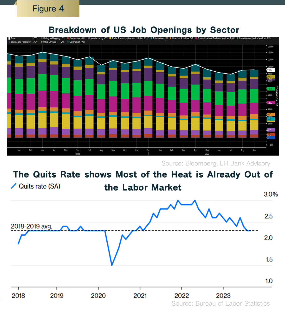 Supply Labor Shortage implies Strong in Labor Market? ทางสหรัฐฯ ได้เปิดเผยตัวเลขตำแหน่งงานว่าง (JOLTs) ออกมาสูงกว่าที่นักวิเคราะห์คาดการณ์ และสูงกว่าจำนวนผู้ว่างงานนั้น เป็นเหตุให้ตลาดมองว่าตลาดแรงงานของสหรัฐฯ ยังคงแข็งแกร่งและเป็นพื้นฐานสำคัญสำหรับการคาดการณ์เศรษฐกิจสหรัฐฯ ในปีหน้าว่ายังมีแนวโน้มในการขยายตัวได้อย่างต่อเนื่อง ด้วยเหตุผลนี้ทำให้นักลงทุนในตลาดต่างมองว่าการเกิด Soft Landing มีความเป็นไปได้สูง แต่ภายใต้บริบทของโครงสร้างตลาดแรงงานที่เปลี่ยนไปในปัจจุบัน LH Bank Advisory กลับมองประเด็นเรื่องความแข็งแกร่งในตลาดแรงงานแตกต่างออกไปซึ่งทำให้บทสรุปอาจไม่ได้ออกมาสดใสดังที่ตลาดคาดการณ์ เมื่อตัวเลขตำแหน่งงานเปิดใหม่ (JOLTs) นั้นแสดงให้เห็นถึงความแข็งแกร่งของฝั่งผู้ประกอบการที่ยังมีความต้องการขยายธุรกิจ แต่ต้องอย่าลืมว่า Productivity จะเกิดขึ้นได้ก็ต่อเมื่อตำแหน่งงานที่เปิดนั้นสามารถจับคู่กับการจ้างงานได้สำเร็จ แต่ปัจจุบันการจับคู่งานดูจะเป็นเรื่องที่ยากมากขึ้น เนื่องจากหากย้อนดูที่ตัวเลขอัตราการเข้าร่วมตลาดแรงงานของสหรัฐฯ (Labor Force Participation Rate) ในปัจจุบันที่ระดับ 62.7% ปรับตัวลดลงจากระดับก่อน Covid-19 ในปี 2020 ที่อยู่ระดับ 63.3% หรือแรงงานกว่า 1.7 ล้านคนหายออกจากระบบไปในช่วง 1 ปีที่ผ่านมา LH Bank Advisory แยกอุตสาหกรรมในตำแหน่งงานเปิดใหม่ (JOLTs) ที่ 9.5 ล้านตำแหน่ง และพบปัญหาใน 2 กลุ่ม 1. งานในกลุ่มอุตสาหกรรมและเหมืองแร่ที่มีการเปิดตำแหน่งกว่า 2 ล้านตำแหน่ง ที่เป็นกลุ่มงานที่คนสหรัฐฯ ให้ความสนใจเข้าร่วมงานน้อยที่สุด และ 2. งานในกลุ่มที่เป็นที่สนใจของตลาดแรงงานสหรัฐฯ เช่น Professional and Business Services และ Health Care and Social Assistance ที่มีการเปิดตำแหน่งงานกว่า 3.3 ล้านตำแหน่ง ก็ล้วนเป็นตำแหน่งที่ต้องใช้คุณวุฒิและใบอนุญาต และเมื่อพิจารณาคุณสมบัติของผู้ว่างงาน พบว่ามีเพียง 2.4 ล้านคนที่จบการศึกษาสูงกว่าอนุปริญญา ซึ่งแสดงให้เห็นว่ายังคงมีตำแหน่งงานว่างอีกประมาณ 1 ล้านตำแหน่งที่ตลาดจะไม่สามารถเติมเต็มได้เนื่องจากภาวะขาดแคลนกำลังแรงงาน และการปรับเพิ่มค่าจ้างเพื่อแย่งกำลังแรงงานจะยังคงดำเนินต่อไปในปี 2024 ค่าจ้างปรับตัวสูงขึ้นแต่การขยายตัวของเศรษฐกิจจะไปเป็นอย่างจำกัด คือสิ่งที่เราประเมินภายใต้สถานการณ์ของการขาดแคลนแรงงานดังเช่นที่เราเผชิญในปัจจุบัน แม้ผลกระทบดังกล่าวอาจยังไม่รุนแรงพอที่จะบ่งชี้ถึงการเกิด Recession ได้ในอนาคต แต่สิ่งที่คาดการณ์ได้อย่างแน่นอนคือการเติบโตของเศรษฐกิจที่จะเริ่มชะลอตัวลงในช่วงเวลาหลังจากนี้ ซึ่งมีน้ำหนักมากเพียงพอที่จะสร้างความผันผวนให้กับตลาดการลงทุนในปีหน้