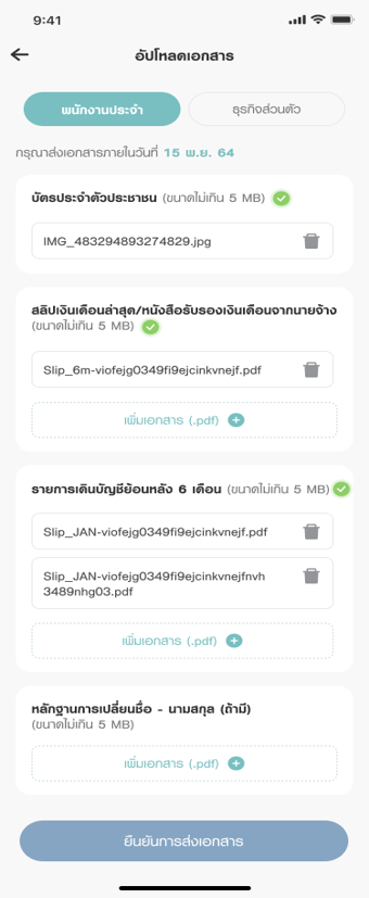 - สำเนาบัญชีเงินเดือนย้อนหลัง 6 เดือน
