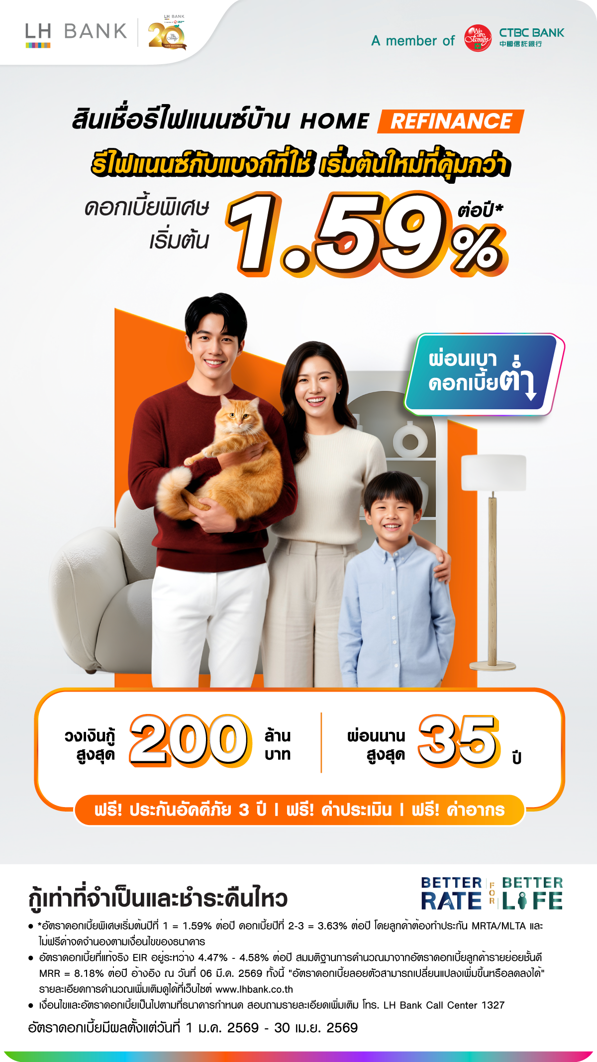 - สิทธิพิเศษสำหรับลูกค้า Refinance เบิกรับเงินกู้ตั้งแต่วันที่ 1 ส.ค. 2568 – 31 ม.ค. 2569